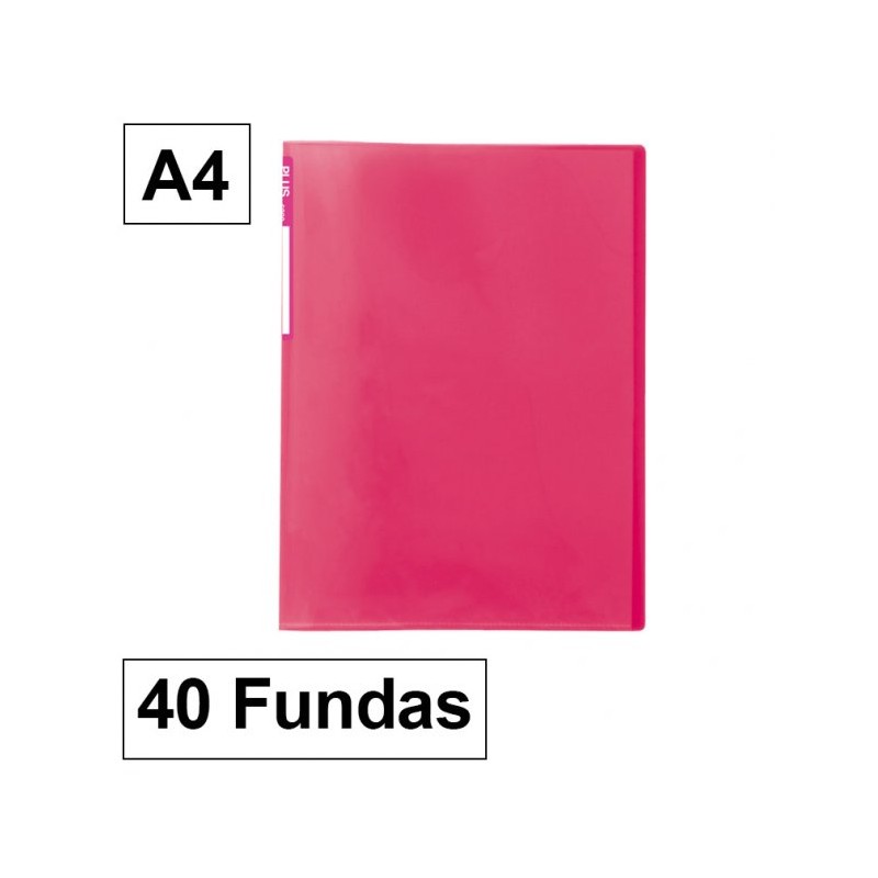 Tapas de polipropileno flexibles. Fundas transparentes de polipropileno antireflejo de 45 micras y resistentes a las fotocopias. Soldadas al lomo. 40 fundas. Color rosa. Medidas: 230 x 305 mm.