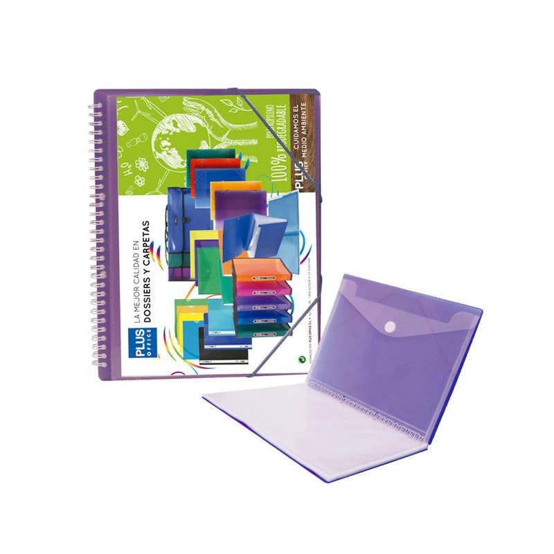 Carpeta Violeta con 50 fundas y espiral Plus Office