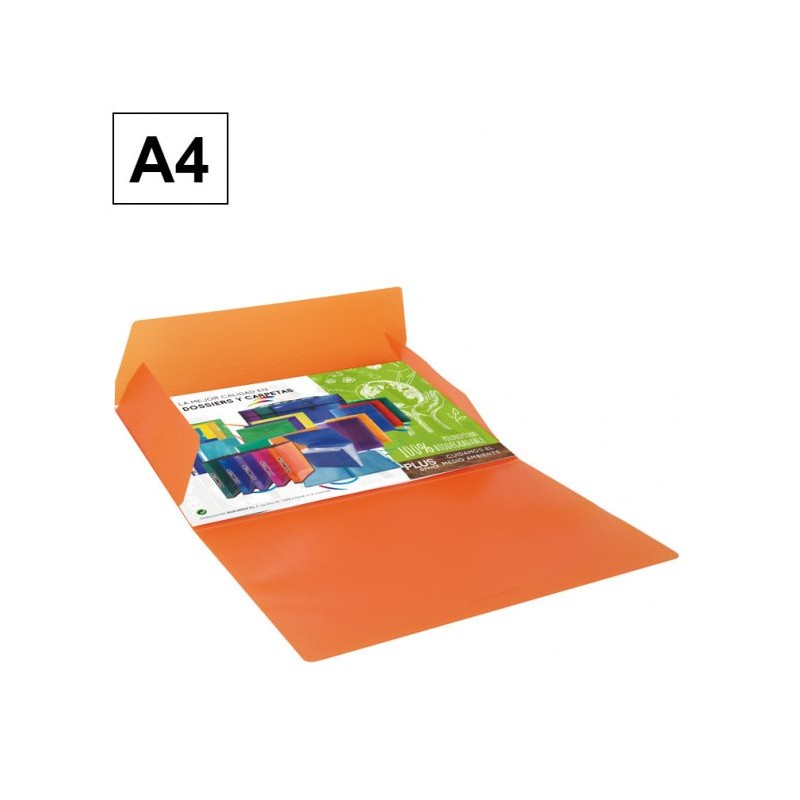 Carpeta fabricada en polipropileno. Color vivo traslúcido. Con 3 solapas y cierre de gomas. Medidas: 247 x 320 mm.