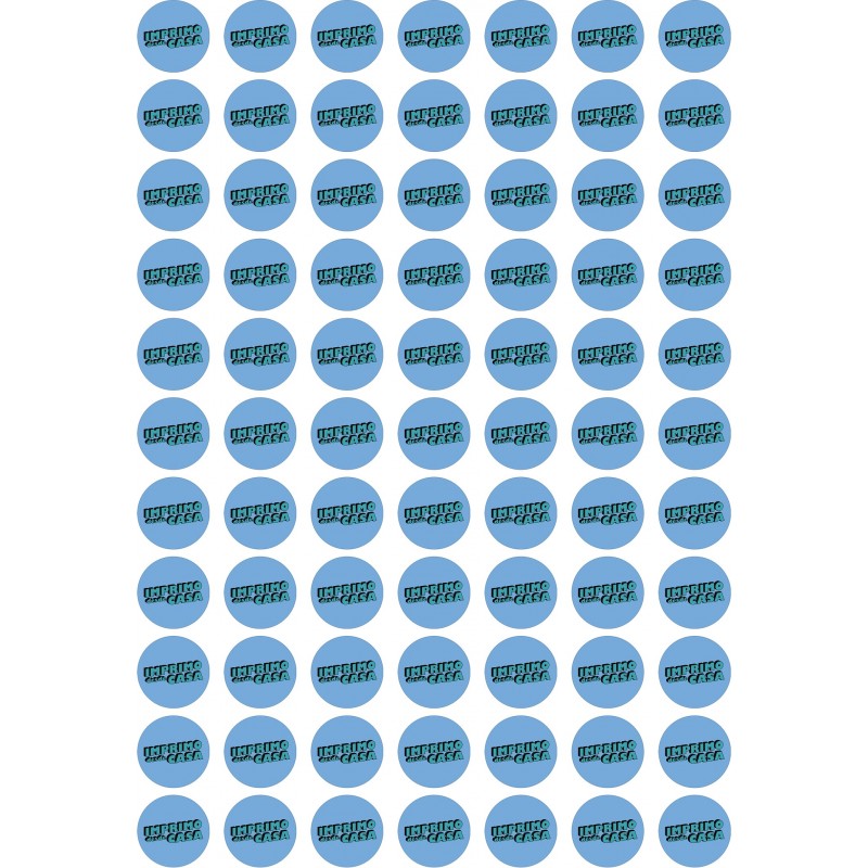 Pegatinas impresas en poliéster blanco brillo y cortado en forma redonda de 3x3cm.