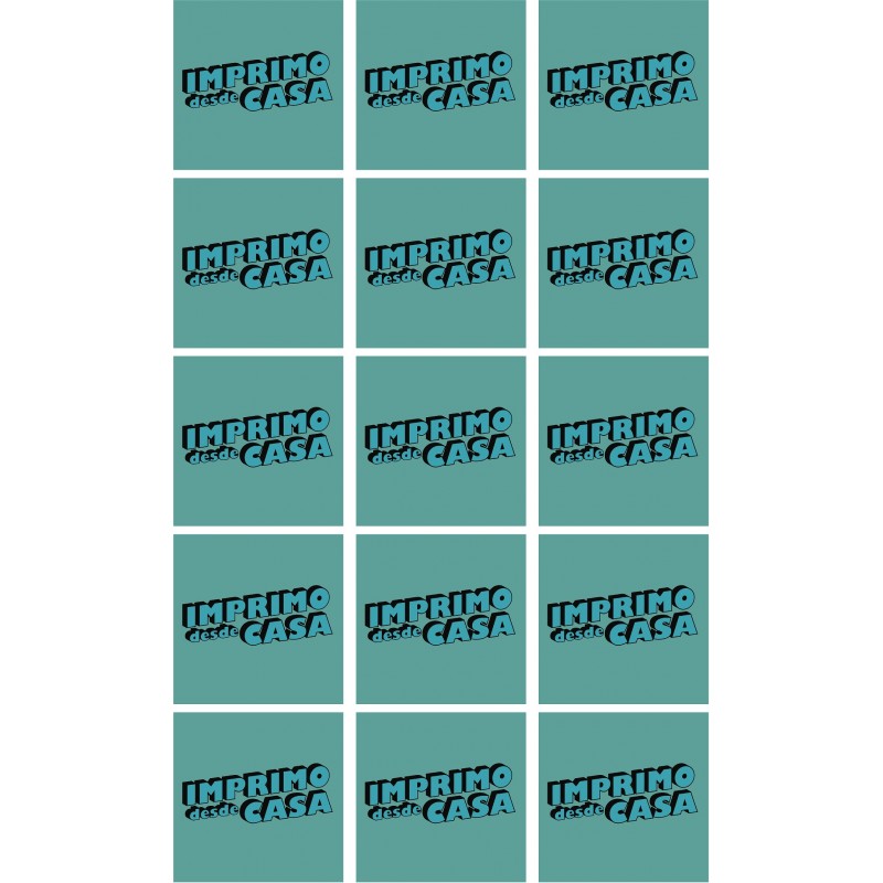 Pegatinas impresas en poliéster blanco brillo y cortado en forma cuadrado de 7x7cm.