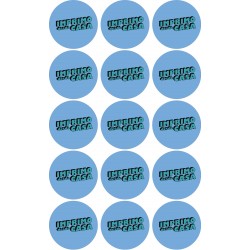 Pegatinas impresas en poliéster blanco brillo y cortado en forma redonda de 7x7cm.